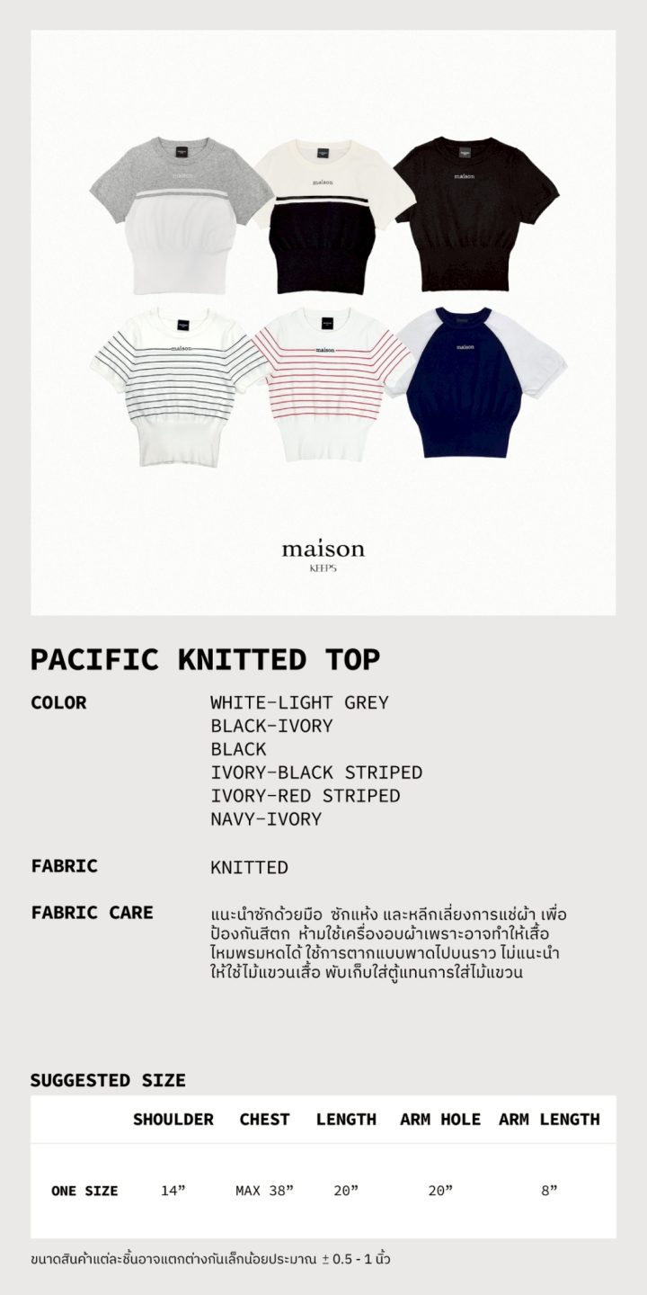 เสื้อไหมพรมผ้าทอนิ่ม มาในทรงแขนสั้นเหนือข้อศอกเล็กน้อยช่วยพรางต้นแขนได้อย่างดี คอกลมทรงพอดีตัว จั๊มช่วงเอวขนาดใหญ่ช่วยให้เอวดูเล็กคอดหลอกตา ขาดไม่ได้เลยคือโลโก้ maison ปักตรงกลางตอกย้ำความเป็นแบรนด์ ใส่แบบเอาช่วงจั๊มเอวเข้าในหรือจะปล่อยออกก็ได้ ช่วยให้ดู chic มากขึ้น