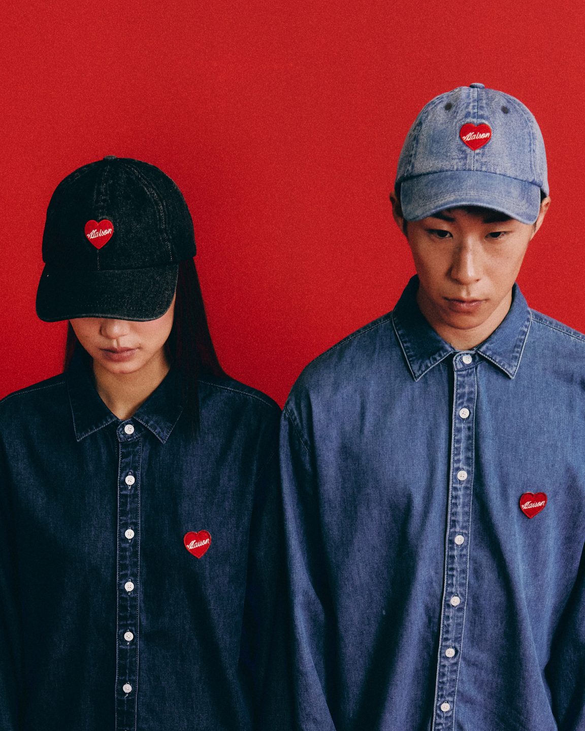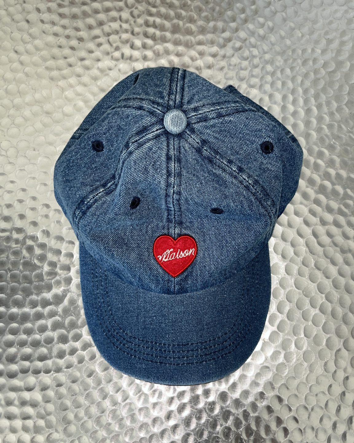 หมวก Denim ทรงคลาสสิค ปรับสายได้ ใส่สบายทั้งวัน โดดเด่นด้วยการปักรูปหัวใจสีแดง โลโก้ลายเส้นตัวเขียน maison ตรงกลาง ตัดกับผ้า denim ได้อย่างลงตัว เป็นไอเทมที่ช่วยเสริมลุคของคุณให้ดู Complete มากขึ้นแนะนำว่าต้องมีติดตู้สุดๆ