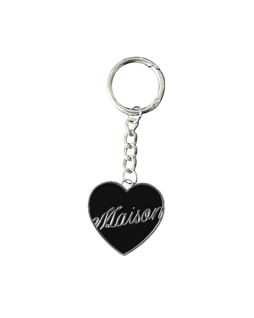 พวงกุญแจรูปหัวใจ โลโก้ลายเส้นตัวเขียน maison สีเงิน จะนำไปห้อยกระเป๋าก็เก๋หรือจะ Styling ห้อยกับกางเกงก็แฟชั่นสุดๆ