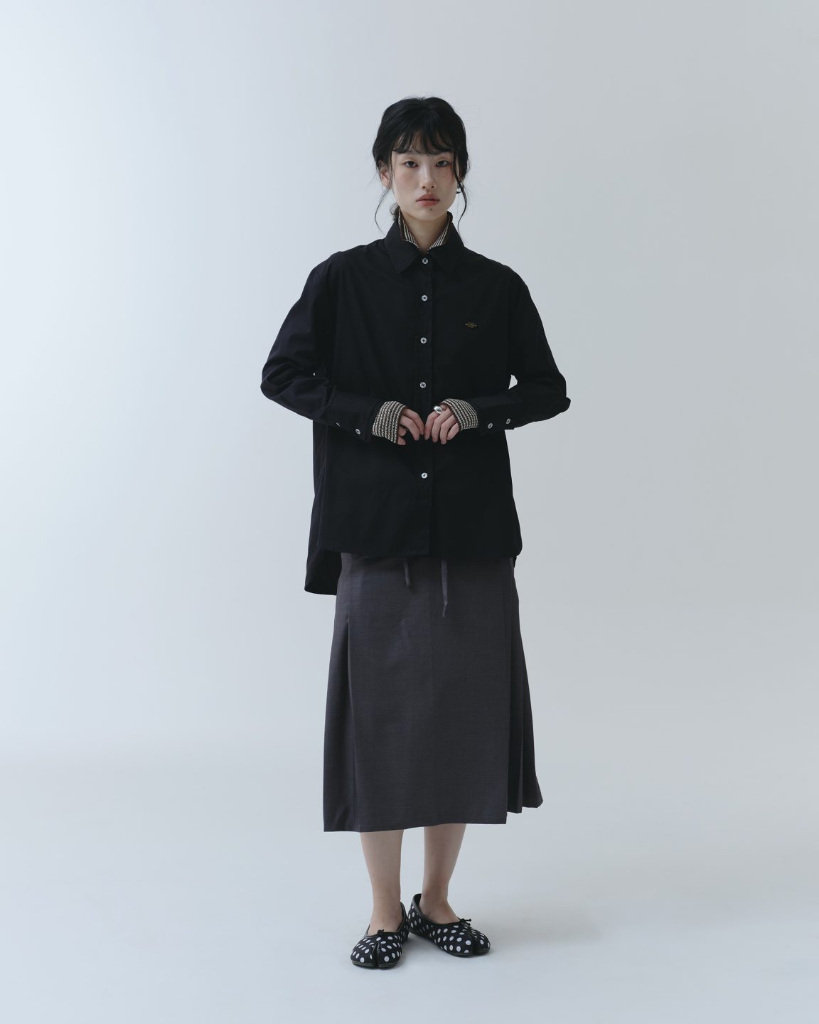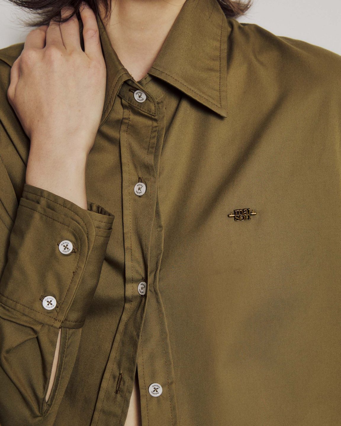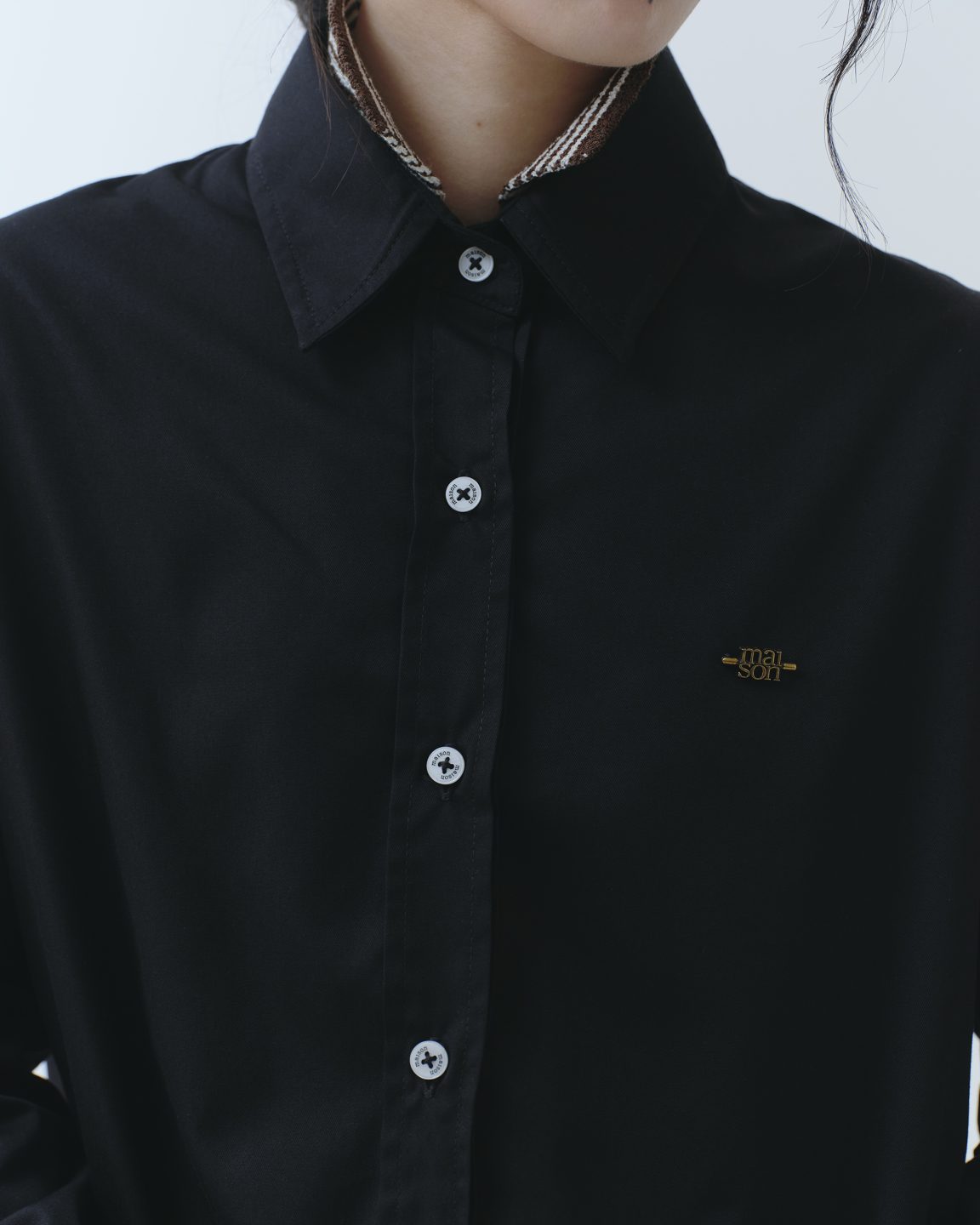 เสื้อเชิ้ตทรง Oversized สีใหม่ที่ช่วยเสริมลุคให้ดูเรียบ เท่ และคลาสสิกยิ่งขึ้น โดดเด่นด้วยดีเทลโลโก้ dual maison โลหะเหล็กสีทอง ตัดกับตัวเสื้อสีดำอย่างลงตัว เสริมด้วยกระดุมสีขาวโลโก้ maison ตัวหนังสือสีดำ และดีเทล Double Cuff ตรงปลายแขนที่เพิ่มลูกเล่นให้ลุคดูมีมิติ เลือกใช้เนื้อผ้า Cotton เนื้อนุ่ม บางเบากำลังดี ใส่สบาย ไม่ร้อน รีดง่าย สามารถแมทช์ได้หลากหลายทั้งลุค Casual และ Formal เป็นเสื้อเชิ้ตสีดำที่ควรมีติดตู้สุดๆ