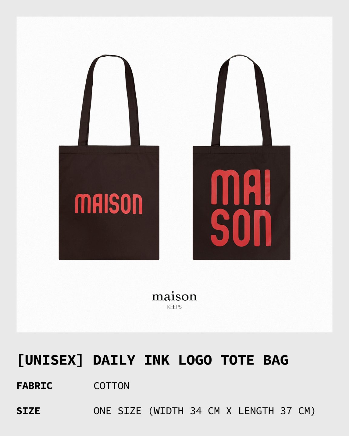 กระเป๋าผ้าทรงคลาสสิค สกรีนโลโก้ maison จากเสื้อรุ่นที่ขายดีมากๆอย่าง The Oversized Ink Tee แบบตะโกนทั้ง 2 ด้าน มาในคู่สีสุดฮิตอย่างสีน้ำตาล-โลโก้แดง เป็นไอเทมที่ช่วยเสริมลุคของคุณให้ดู Complete มากขึ้น แถมใช้งานได้จริงเพราะเรารองผ้าด้านในถึง 2 ชั้น ใส่ของได้จุและยังคุณภาพดีอีกด้วย