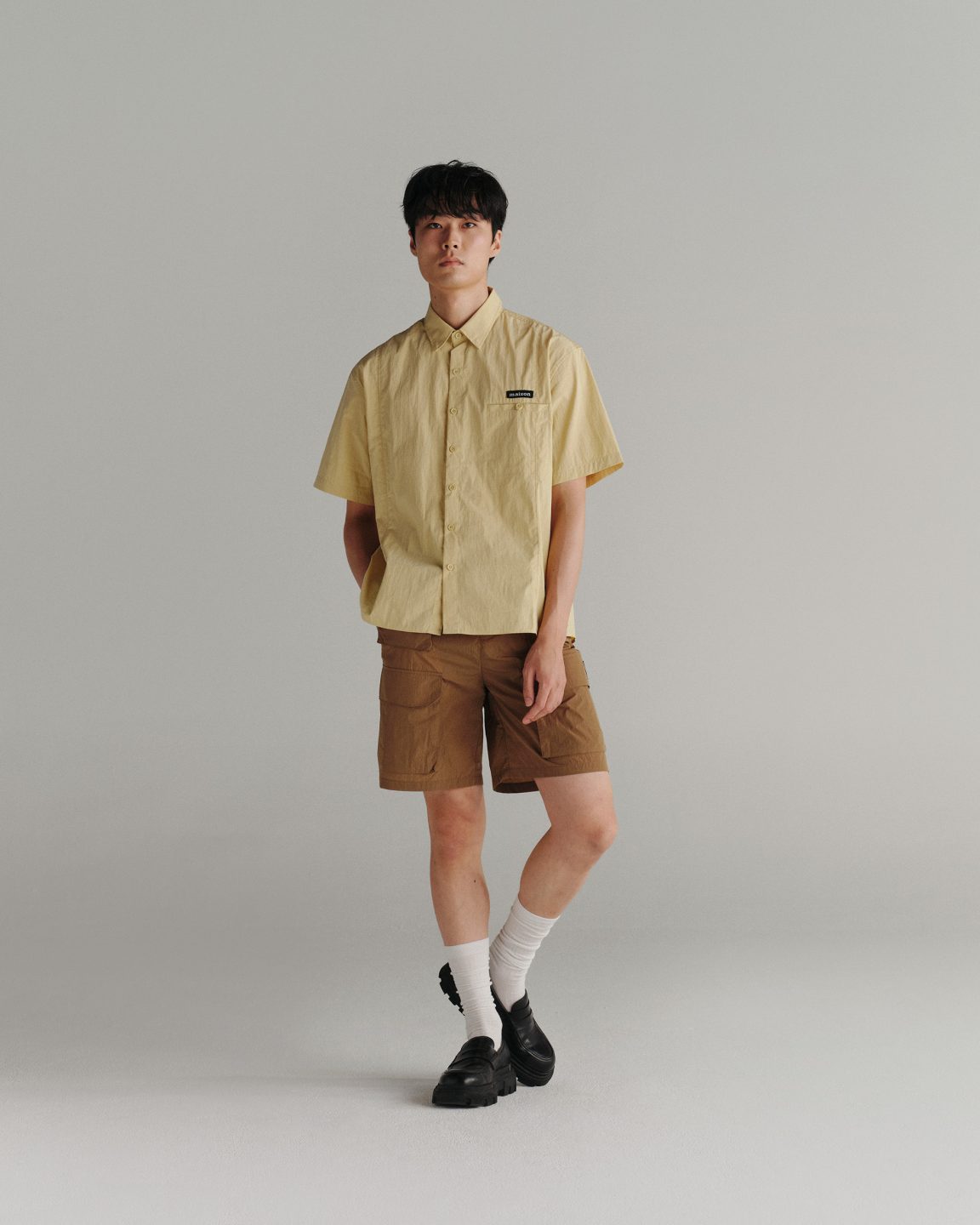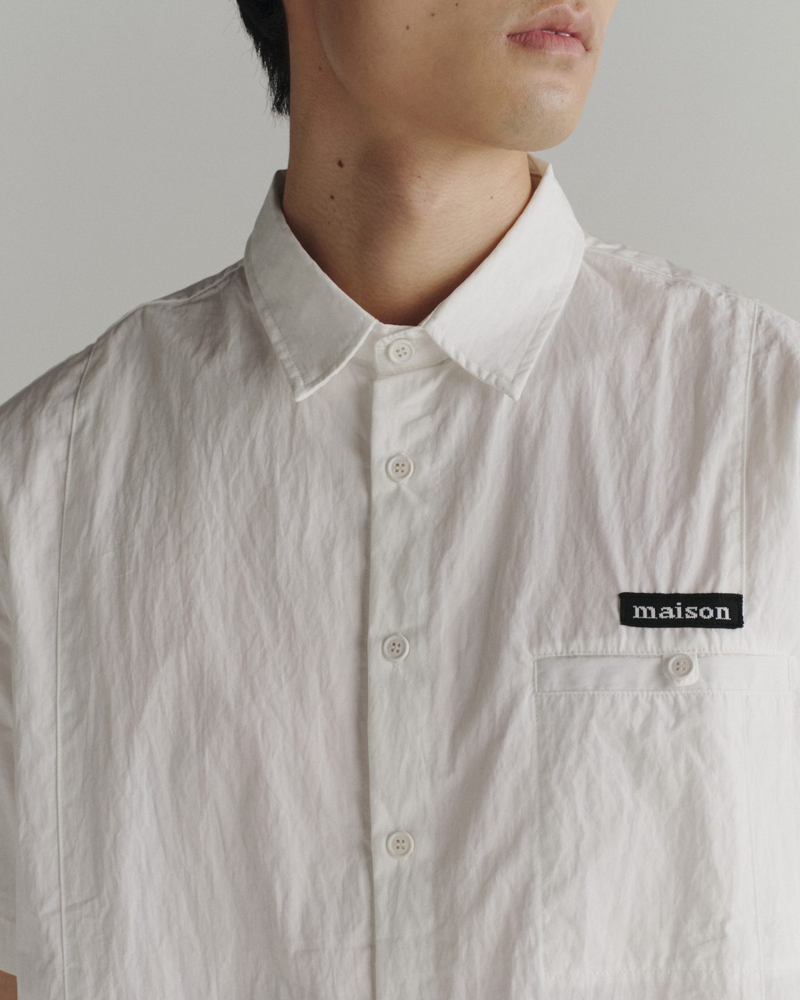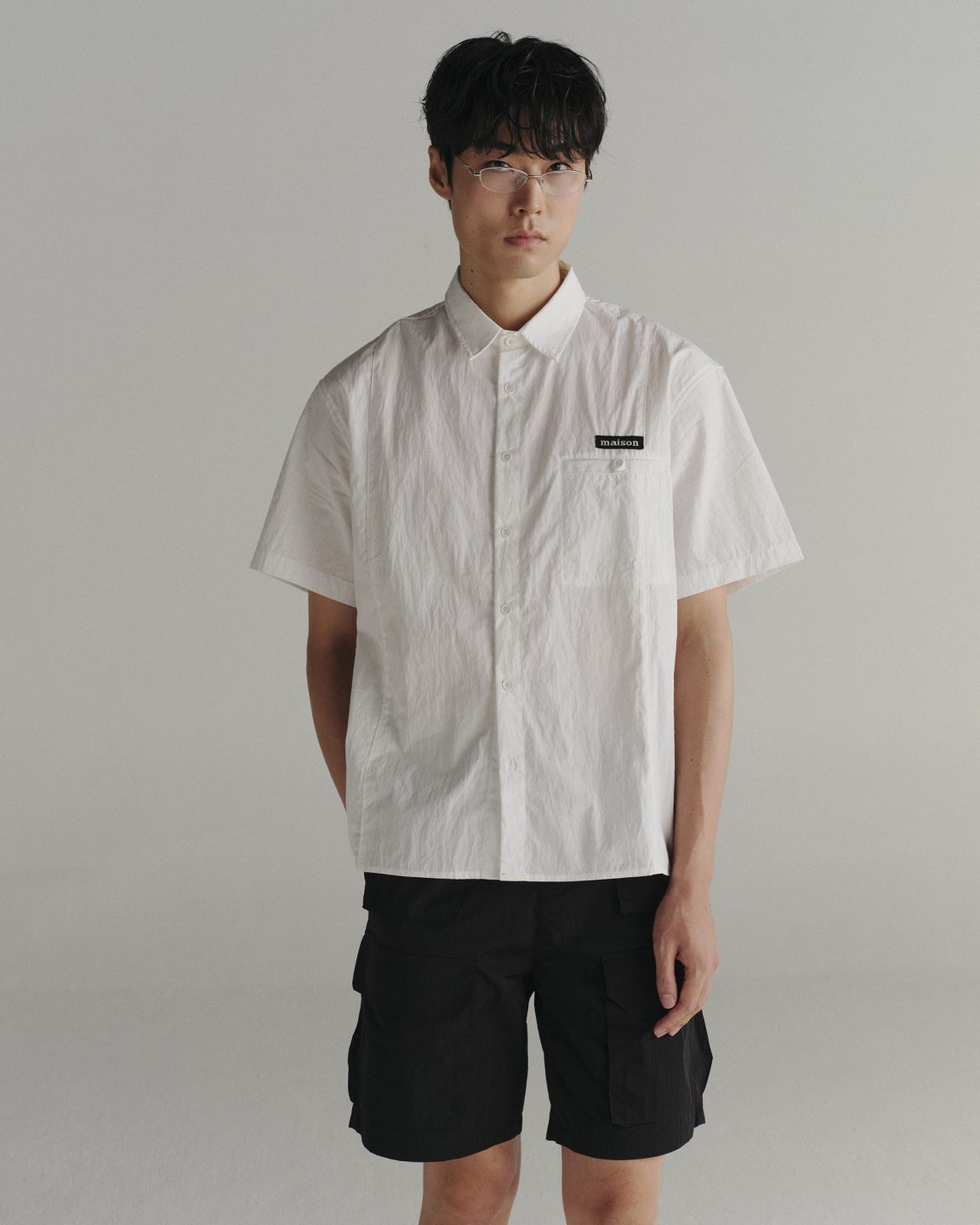 เสื้อเชิ้ตแขนสั้นทรง Relaxed Fit ที่ออกแบบมาให้สวมใส่สบาย ไม่หลวมเกินไป เพิ่มลูกเล่นด้วยดีไซน์การตัดต่อชิ้นผ้า สร้างกิมมิคที่โดดเด่นแต่ยังคงความเรียบเท่ สไตล์ minimal ตามแบบฉบับของแบรนด์ แต่งด้วยป้ายทอยางยืด maison KEEPS ที่ติดเหนือกระเป๋าเสื้อ เลือกใช้เนื้อผ้า Nylon ที่มีน้ำหนักเบา แห้งไว มี texture ยับนิดๆที่เป็นกิมมิคเฉพาะของเนื้อผ้านี้ สวมใส่สบาย ให้ลุค Casual Style ที่คลาสสิคสุดๆ