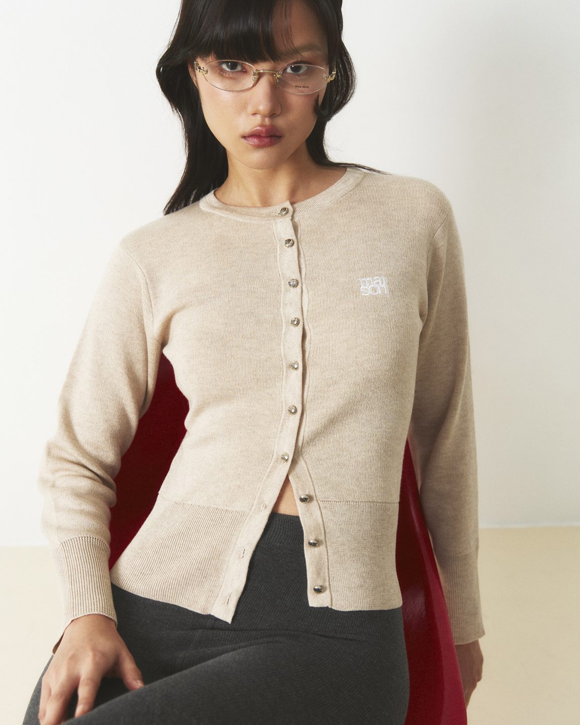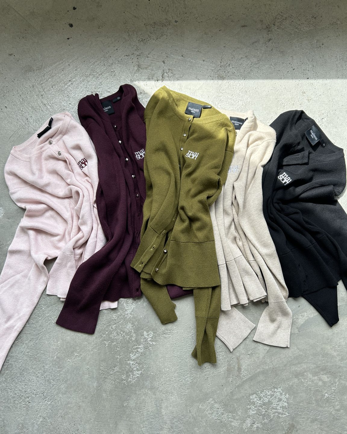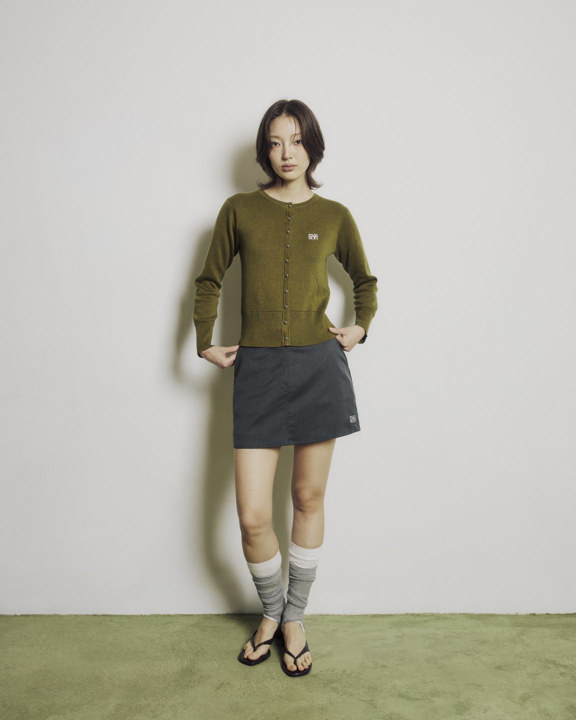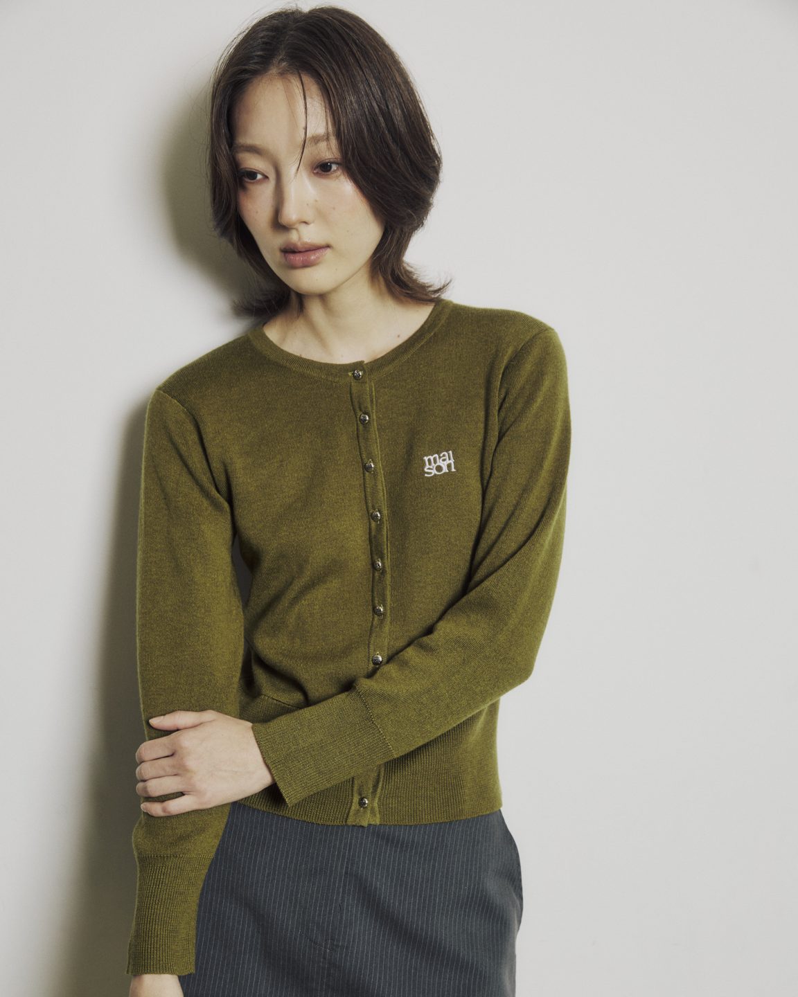 เสื้อคาร์ดิแกนสีใหม่ มาในโทน Deep Natural Hues เฉดสีเขียว Olive ที่ให้ความรู้สึกอบอุ่นและหรูหรา สไตล์ Old money เหมาะกับ Fall/Winter นี้สุดๆ ทอไหมพรมเนื้อนุ่ม ไม่หนามากใส่ได้สบายๆ ทรงพอดีตัว ดีเทลปลายแขนและชายเสื้อแต่ง Rib เพื่อความกระชับแต่งด้วยกระดุมสีเงินปั๊มโลโก้แบรนด์ที่ดีไซน์มาให้ติดแบบถี่ๆ เพิ่มกิมมิคให้กับเสื้อ ปักโลโก้ Dual maison ที่อกด้านซ้ายใช้ลูกเล่นจับคู่สีให้เสื้อตัวนี้ดูไม่น่าเบื่อ ให้ลุคสาวคลาสสิคแบบสดใส เป็นตัวที่สาวๆควรมีติดตู้สุดๆ