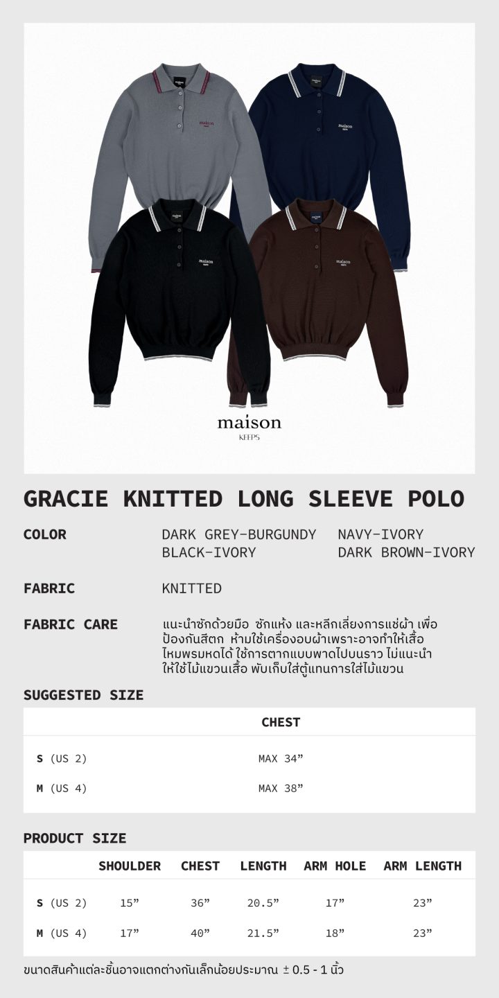 สีใหม่สุดคลาสสิค เสื้อโปโลแขนยาวสุด Preppy มาในทรง Regular Fit ที่ไม่ได้เข้ารูปจนเกินไป แต่งปลายแขนและชายเสื้อแบบจั๊มพ์ เพิ่มความกระชับและช่วยให้ดูมีเอวมากขึ้น เนื้อผ้ามีความยืดหยุ่น ไม่หนาและระบายอากาศได้ดี คอปกแบบ Polo แต่งลายเส้นเดินขอบเพิ่มลูกเล่นแบบ Sporty นิดๆและปักโลโก้ maison KEEPS บนอกด้านซ้าย จะใส่ตัวเดียวเดี่ยวๆหรือจะ mix&macth ด้วยการนำไป layer ทับก็เก๋สุดๆ