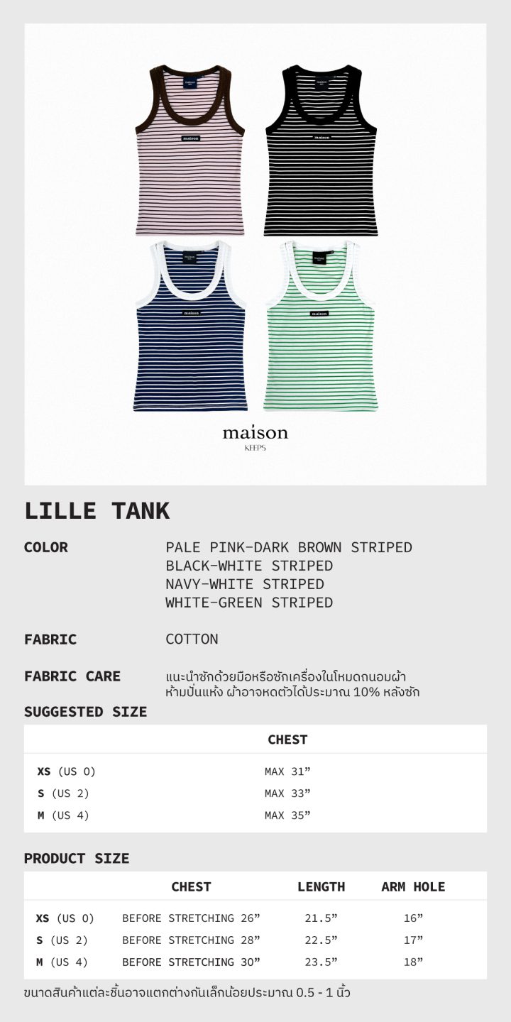 เสื้อกล้ามรุ่นใหม่ ทรง Slim fit ที่เข้ารูปพอดีตัวแต่ไม่รัดจนเกินไป ดีไซน์เรียบง่ายแต่โดดเด่นด้วยขอบกุ๊นคอและแขนตัดกับตัวเสื้อสไตล์วินเทจ เพิ่มกิมมิคด้วยการติดป้ายทอ maison  ตรงกลางอก เลือกใช้เนื้อผ้าลายทางสุดคลาสสิค ที่มีความยืดหยุ่น เนื้อนุ่ม สัมผัสเบาสบาย ไม่ระคายผิว จะใส่ตัวเดียวเดี่ยวๆหรือจะนำไปใส่เลเยอร์ทับกับรุ่น Loly Long Sleeve Top เก๋ๆ ชิคๆ Complete Look สุดๆ