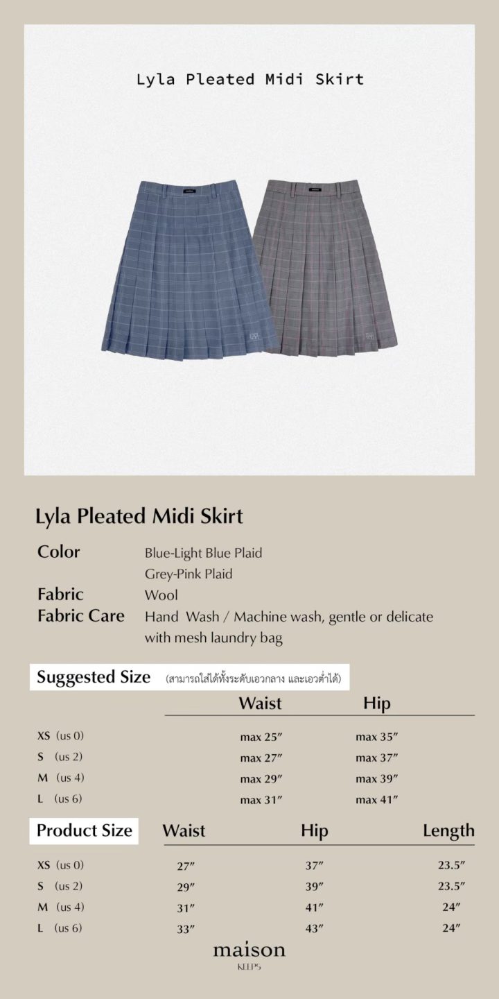 กระโปรงพลีทยาวรุ่นใหม่ ความยาวระดับเข่า (ขึ้นอยู่กับความสูงผู้สวมใส่) ใช้เทคนิคการเย็บล็อกจีบรอบตัวเพื่อช่วยเสริมทรงให้พอดีอย่างมีมิติ ใส่แล้วไม่ดูแบน แต่ช่วยเน้นสัดส่วนให้ดูมีทรวดทรงอย่างพอดี สามารถใส่ได้ทั้งระดับเอวกลางและเอวต่ำ มาด้วยกัน 2 สีสุดน่ารักกับผ้าลายสก็อตสไตล์ Modern Preppy แต่งด้วยป้ายโลโก้ maison KEEPS แบบทอตรงกลาง ปักโลโก้ Dual maison ที่ชายกระโปรง มีหูเข็มขัดสามารถเพิ่ม Accessory เสริมลุคให้ดู complete มากขึ้น หรือจะนำไปเลเยอร์ทับกับท่อนล่างตัวอื่นๆเพิ่มมิติในการแต่งตัวให้ดูสนุกขึ้น และช่วยเปลี่ยนลุคให้กลายเป็นสาวชิคได้ทันทีที่ได้ใส่