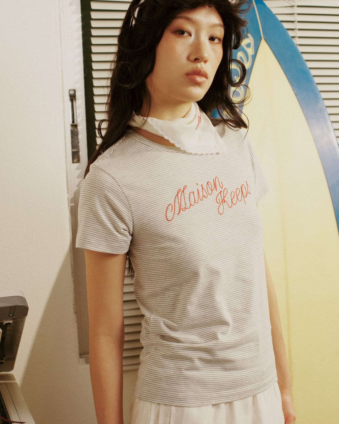 เสื้อยืดทรง Slim Fit ลายทางสีสันสดใสดีไซน์ใหม่ต้อนรับ Summer นี้ โดดเด่นด้วยการปักโลโก้ตัวเขียนสีแดง ที่มีเทคนิคการปักแบบใหม่ด้วยดีเทลเป็นจุดเล็ก ๆ เรียงตัวกันเป็นคำว่า maison KEEPS ทรงเสื้อเข้ารูปพอดีตัว ช่วยให้หุ่นดูผอมเพรียว แต่ยังใส่สบายไม่อึดอัด เนื้อผ้านุ่มละมุนและยืดหยุ่น ไม่ระคายผิว จะ Match แบบไหนก็มีสไตล์