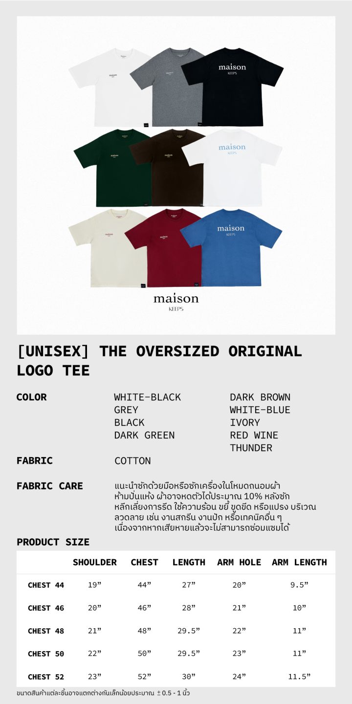 Size : Oversize มี 4 ไซส์ให้เลือก (อก 44" / 46" / 48" /50" / 52")
