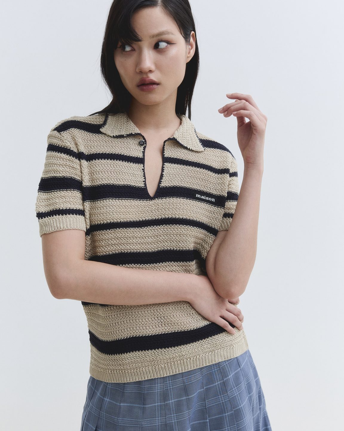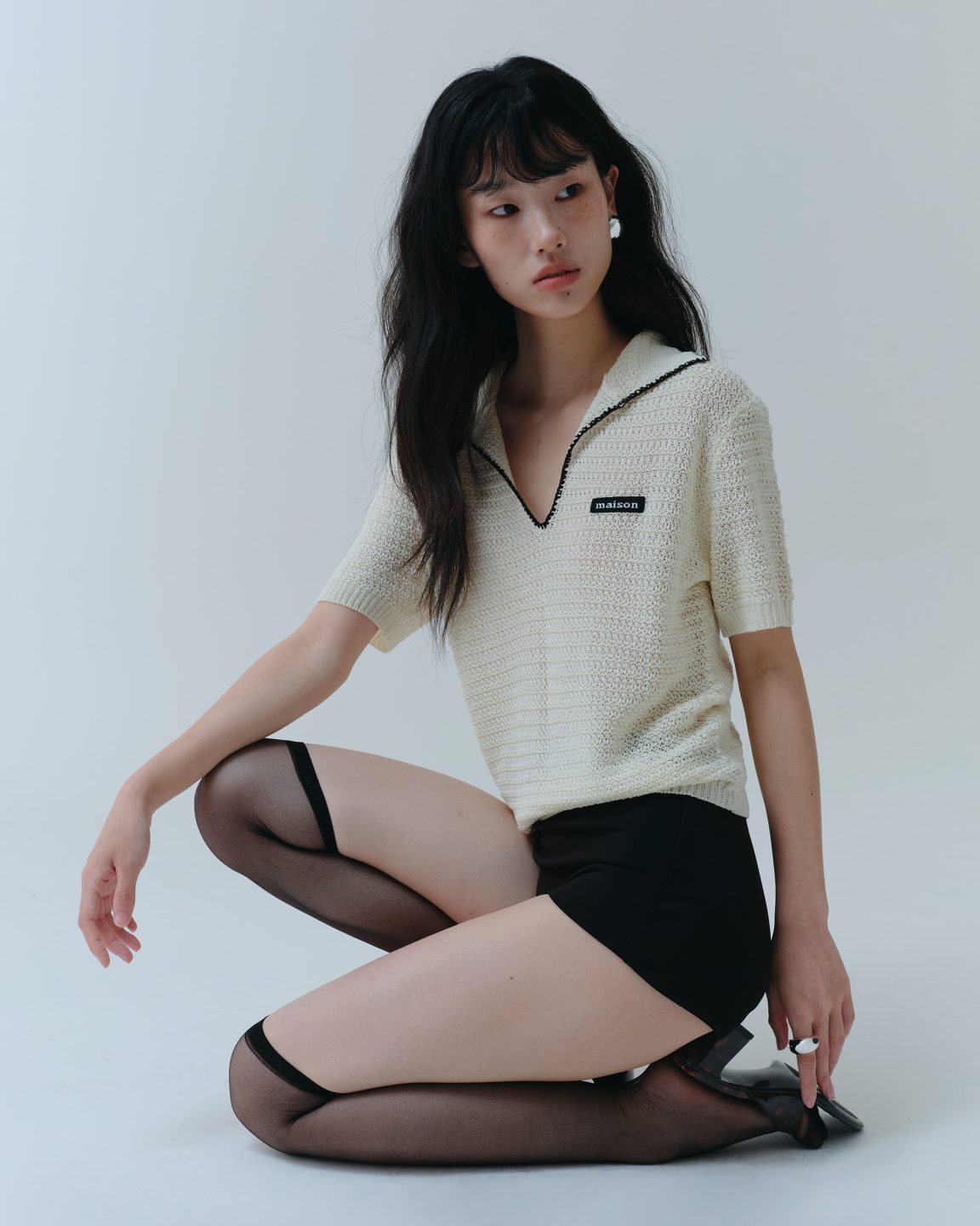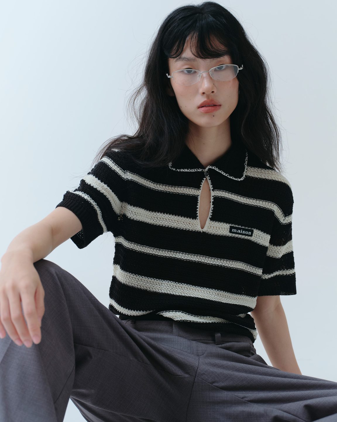 เสื้อไหมพรมรุ่นฮิตมาใน 3 สีใหม่โทน Timeless Neutrals เฉดสีครีมและดำ ที่ใช้เทคนิคการถักลายตาข่ายเล็กๆแบบ crochet สไตล์วินเทจ เพิ่มมิติให้กับเสื้อ ผิวสัมผัสโปร่ง สบาย ระบายอากาศได้ดี เหมาะกับสภาพอากาศร้อน แต่งกระดุมโลโก้ maison พื้นดำตัวหนังสือสีเงินสะท้อนแบบมีมิติ จะใส่แบบติดหรือไม่ติดกระดุมก็ได้ลุคที่เก๋ไม่แพ้กัน เพิ่มความ Unique ด้วยการติดป้ายทอ maison บนหน้าอกด้านซ้าย เป็นไอเทมที่แมทช์ง่าย เติมเสน่ห์ให้ทุกลุคได้อย่างลงตัวในทุกวัน