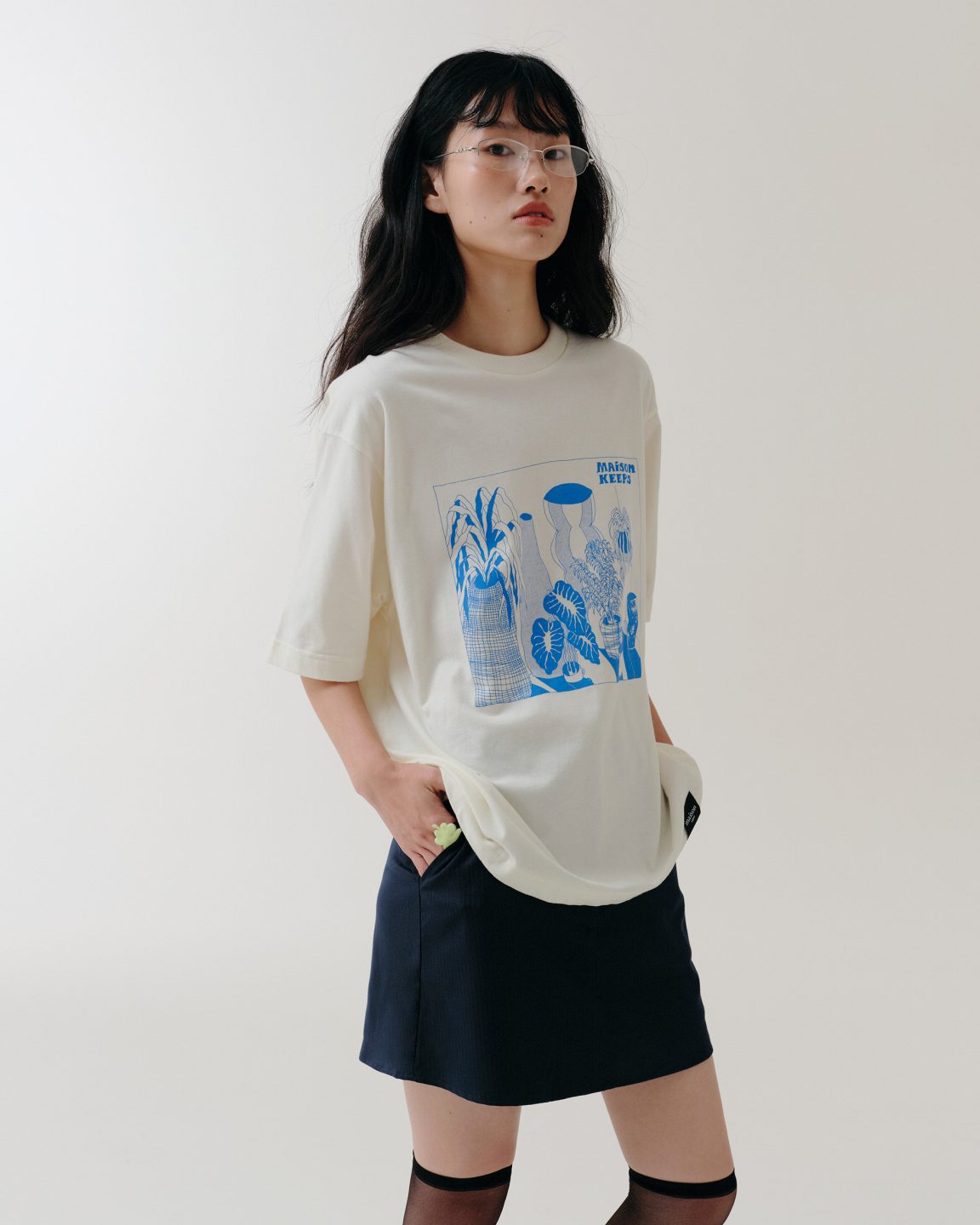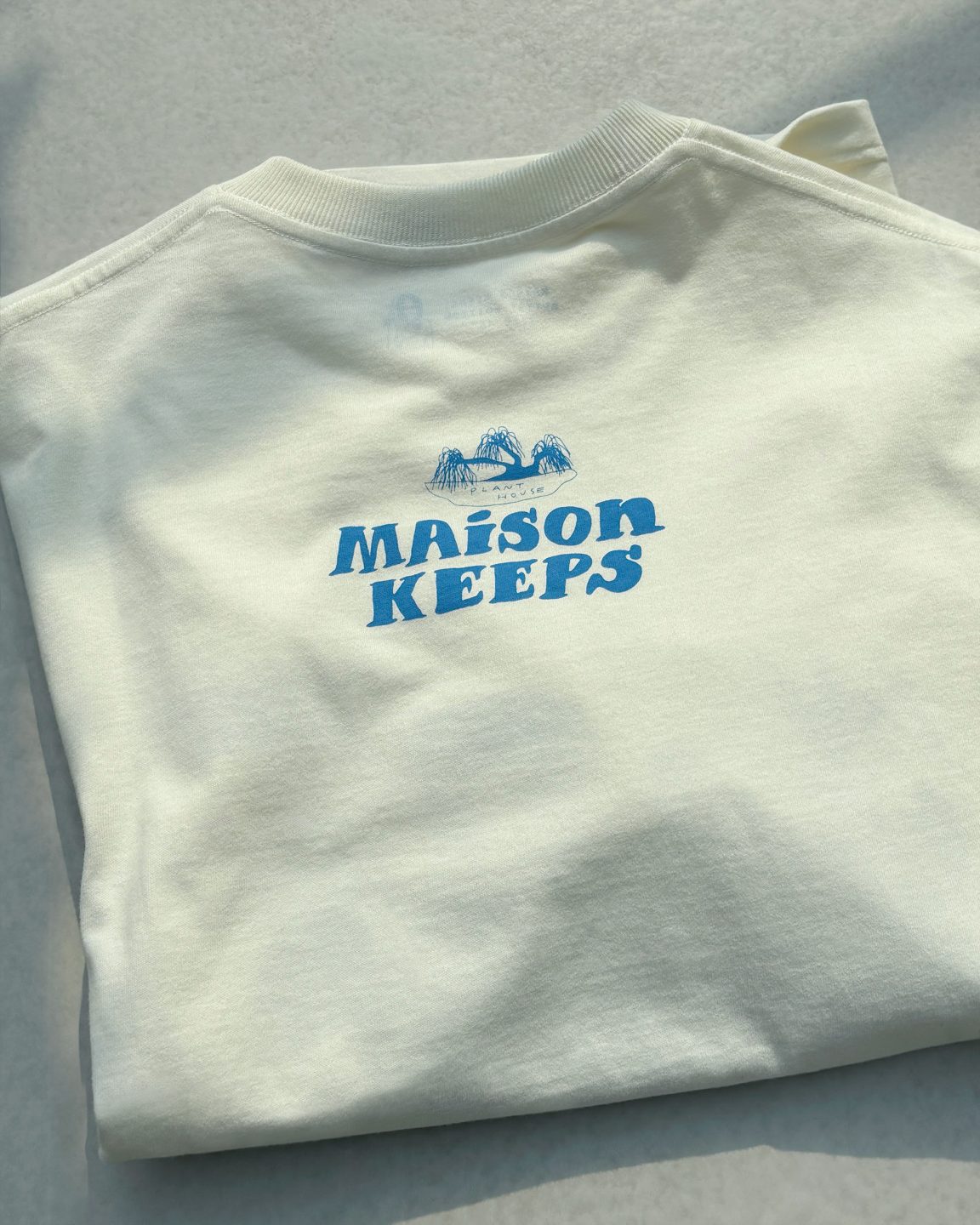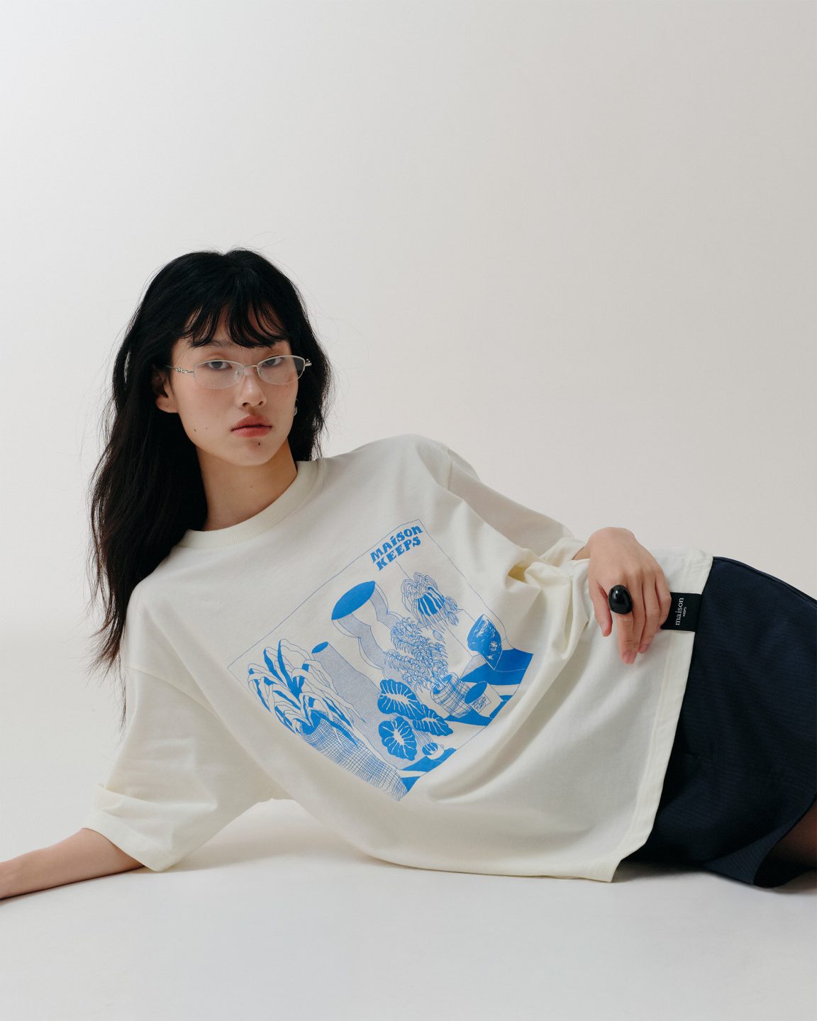 และรูปทรงที่ดูแปลกใหม่ โดยแต่ละต้นมีรายละเอียดที่แตกต่างกันออกไป ตามสไตล์งานของ nnene.iie เพื่อบอกเล่าเรื่องราวของบ้านในแบบ maison KEEPS บนเสื้อยืดทรง Oversized ที่ทั้งใส่ง่าย ใส่สบาย และเต็มไปด้วยดีเทลที่มีความหมาย