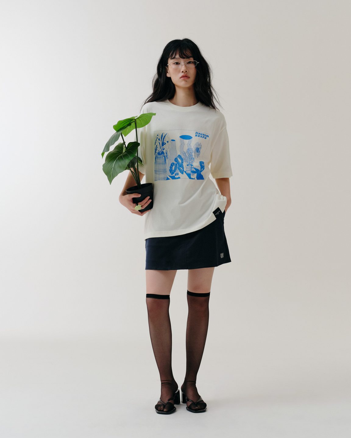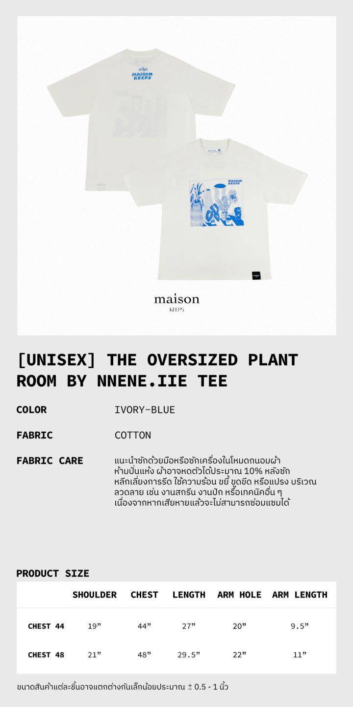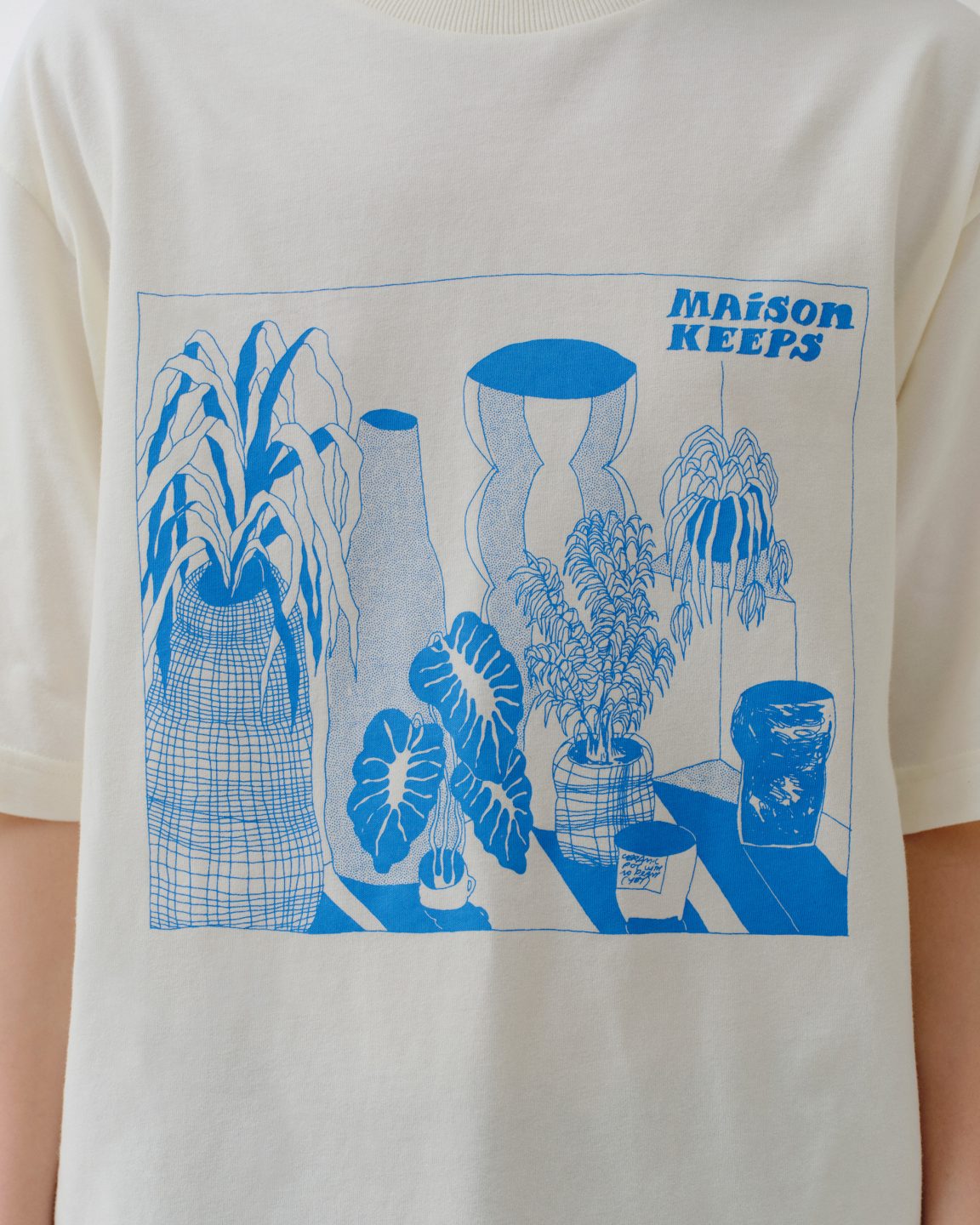 และรูปทรงที่ดูแปลกใหม่ โดยแต่ละต้นมีรายละเอียดที่แตกต่างกันออกไป ตามสไตล์งานของ nnene.iie เพื่อบอกเล่าเรื่องราวของบ้านในแบบ maison KEEPS บนเสื้อยืดทรง Oversized ที่ทั้งใส่ง่าย ใส่สบาย และเต็มไปด้วยดีเทลที่มีความหมาย